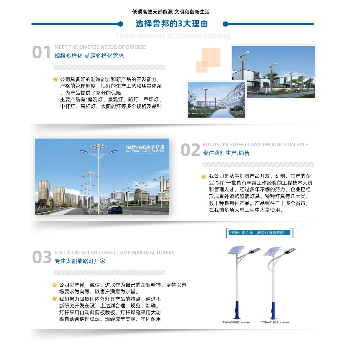 喀什市魯邦燈具廠是從事燈具產品開發(fā)、研制、生產的企業(yè);產品有:太陽能路燈,高桿燈,景觀燈,庭院燈,中華燈,監(jiān)控桿燈等擁有一批具有豐富工作經驗的工程技術人員和管理人才,經過多年不懈的努力,企業(yè)已經形成室外道路照明燈具、特種燈具等幾大類、數(shù)十種系列化產品。產品銷往二十多個省市,在我國多項大型工程中大量使用。公司具備完善的制造能力和新產品的開發(fā)能力,嚴格的管理制度,很好的生產工藝和質量體系,為產品提供了充分的保障。公司以嚴謹、誠信、進取作為自己的企業(yè)精神,堅持以市場要求為向導,以客戶滿意為宗旨。公司將以產品質量和銷售服務為各界用戶提供放心的產品、滿意的服務。